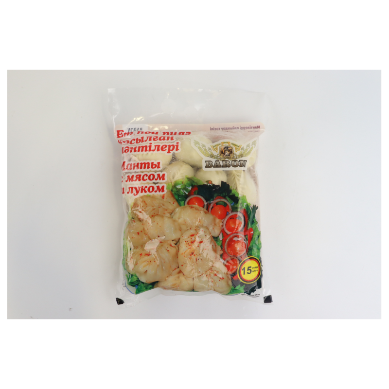 Манты Baron домашние (700 г): Манты Baron в упаковке весом 700 г амм - это домашнее блюдо, которое легко и быстро приготовить в домашних условиях. Традиционные ингредиенты, такие как тесто и начинка из мяса, могут быть смешаны с луком и специями, обеспечивая вкусное и сытное блюдо.