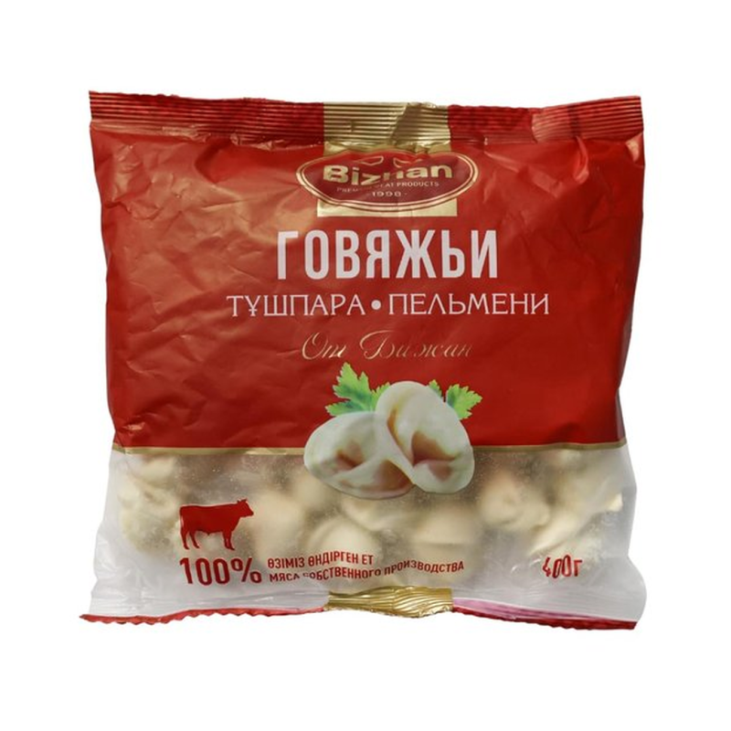 Пельмени Бижан Говяжьи: Пельмени Бижан с говядиной – это традиционное русское блюдо из теста, начиненное говяжьим мясом. Обычно их готовят путем варки или жарки. Ингредиенты могут варьироваться, но обычно они содержат тесто и начинку из говядины, лука, специй и других ингредиентов.