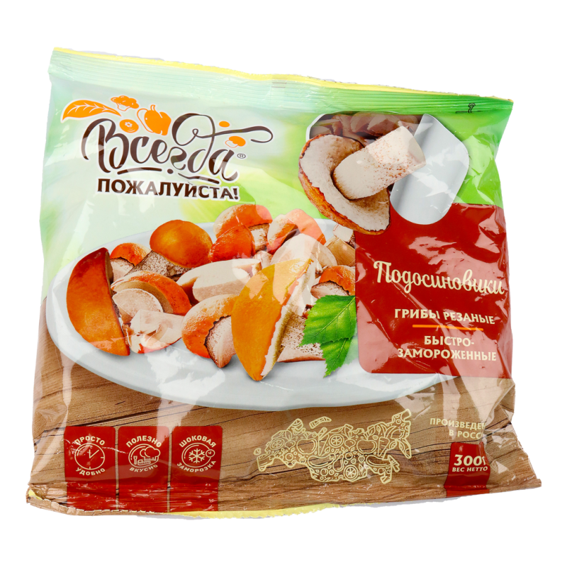 Грибы подосиновики «Всегда Пожалуйста» упакованы в удобную упаковку весом 300 г амм, предлагая свежие и ароматные экземпляры для вашего кулинарного творчества. Эти натуральные грибы среднего размера идеально подходят для приготовления различных блюд, добавляя им неповторимый вкус и аромат. Наслаждайтесь удобством и качеством с грибами «Всегда Пожалуйста» , готовыми удовлетворить ваши кулинарные желания.
