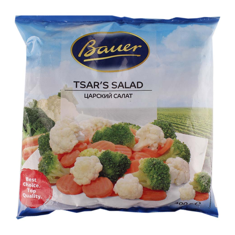 Салат «Царский» Oerlemans Bauer в упаковке весом 400 г амм - это изысканное сочетание свежих овощей, приправленное неповторимым вкусом. Насыщенный аромат и яркий вкус каждого ингредиента создают неповторимый кулинарный опыт. Идеальное дополнение к основным блюдам или самостоятельное удовольствие для ценителей здоровой и вкусной пищи.