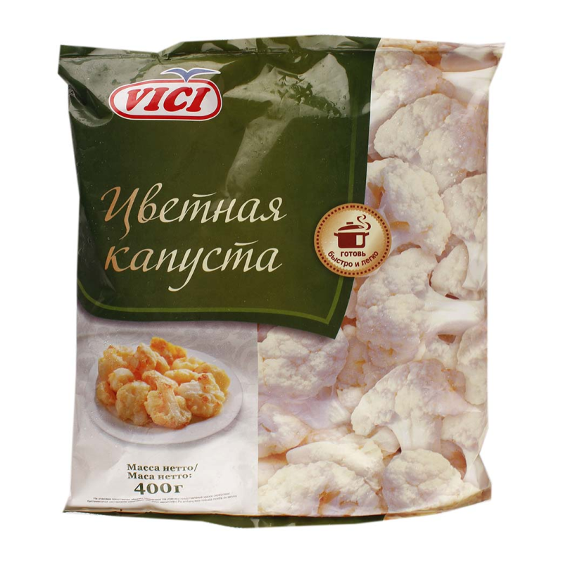 Капуста цветная Vici в упаковке весом 400 г аммов - это свежий и натуральный продукт, который добавит яркости и вкуса вашему столу. Свежая цветная капуста идеально подойдет для приготовления салатов, гарниров или добавления в кулинарные эксперименты. Упаковка обеспечивает удобство хранения и использования этого полезного овоща.