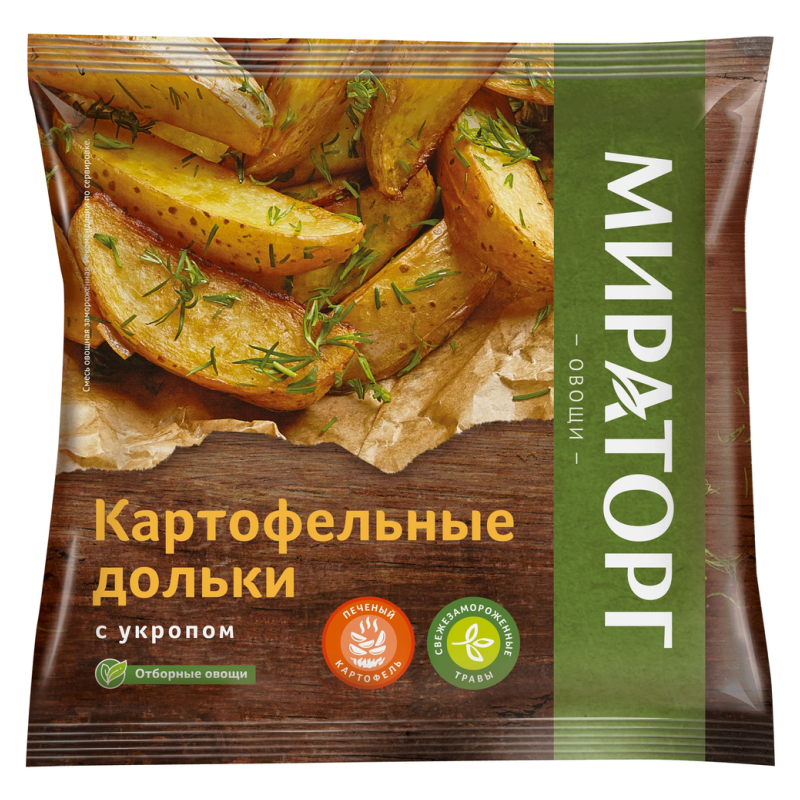 Дольки картофельные с укропом от «Мираторг» весом 400 г амм - это изысканное блюдо, представляющее собой картофель, нарезанный на дольки и приправленный свежим укропом. Это блюдо отличается сочным вкусом и ароматом укропа, который придает ему особый характер. Удобная упаковка обеспечивает легкость в использовании и хранении.