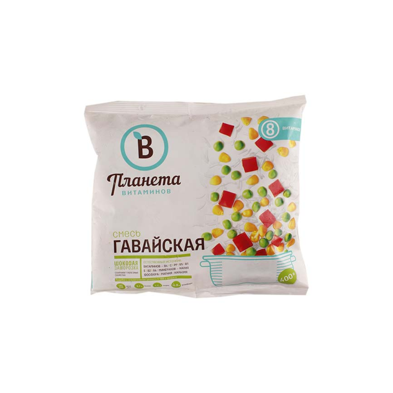 Овощная смесь с экзотическими гавайскими нотками легко и быстро готовится. Благодаря шоковой заморозке, продукт сохранил все свои полезные и питательные свойства.