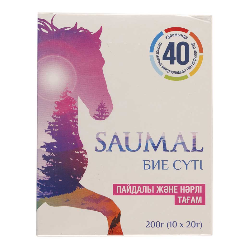 Из всех видов молока именно кобылье наиболее приближено по составу и структуре к материнскому грудному молоку, как принадлежащее к альбуминовой группе. Благодаря этому саумал быстро переваривается и полностью усваивается организмом. Молоко других домашних животных относится к казеиновой группе, что зачастую вызывает аллергические реакции. Кобылье молоко невероятно богато витаминами всех групп: А, В, С, D, Е, РР. Причем по содержанию витамина С оно превосходит другие виды молока во много раз: 500 мл кобыльего молока обеспечивает суточную потребность организма в этом витамине. Физиологическое сочетание большого количества аскорбиновой кислоты со всеми другими витаминами, особенно группы В, А, Е способствует лечению хронических заболеваний. В состав кобыльего молока также входят железо, медь, магний; имеется высокое содержание цинка и калия. Высокое содержание лактозы, жизненно важных аминокислот и ретинола очень важно для нормализации работы различных органов и тканей. Кроме того, благ