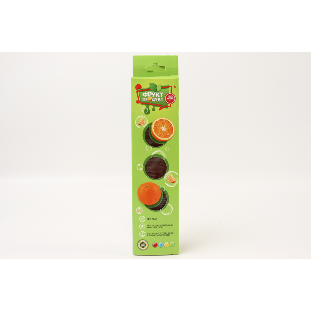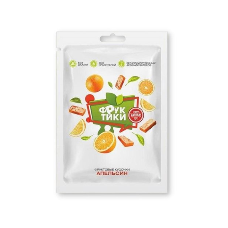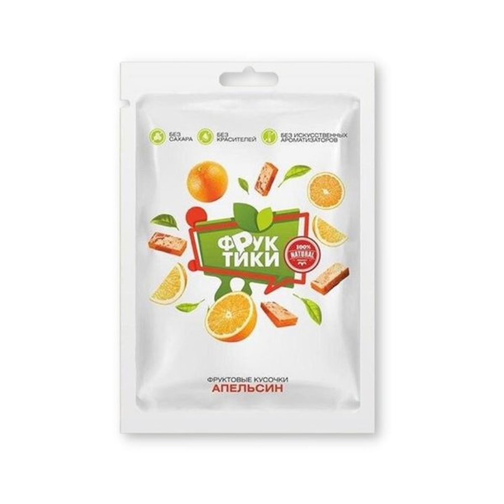 В основе продукта заложен апельсин и его полезные свойства! Пачка фруктиков равноценна 4-5 долькам апельсина среднего размера, которые измельчаются до состояния пюре, добавляется для сладости натуральные сахорозаменители и упаковывается в специальную пленку, позволяющую продукту так долго храниться и не терять свои полезные свойства. Фруктики являются сладким решением проблем питания. Фруктовые кусочки содержат в себе множество витаминов и минералов, их употребление способствует улучшению и норм