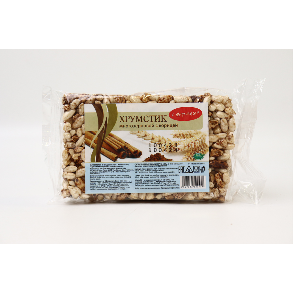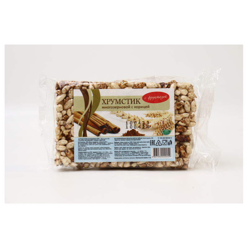 Батончик хрумстик с корицей и фруктозой - это вкусный и полезный перекус с многозерновым составом. Он содержит муку из пшеницы, овса, ржаной муки, корицы, фруктозы, масло растительное, соль и сахар. Батончик хрумстик прекрасно подходит для завтрака или перекуса в дорогу.