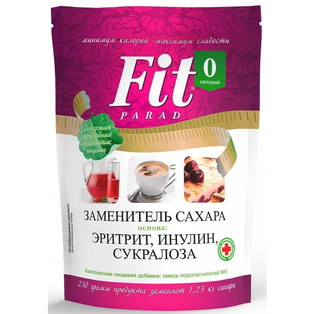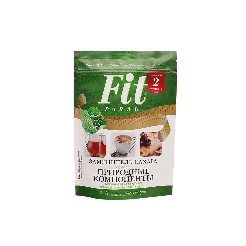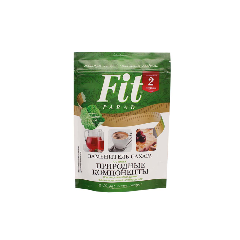 Инновационный низкокалорийный заменитель сахара на основе природных компонентов. Заменитель сахара «ФитПарад» №10 можно использовать для приготовления десертов и сладких напитков, а также добавлять в каши и другие блюда, принимая во внимание то, что продукт слаще сахара в 10 раз. Подсластитель безопасен для больных диабетом и может использоваться в диетическом питании людей, страдающих лишним весом. Кроме того, спортсмены и сторонники здорового питания также являются потребителями данного продук