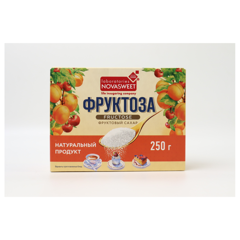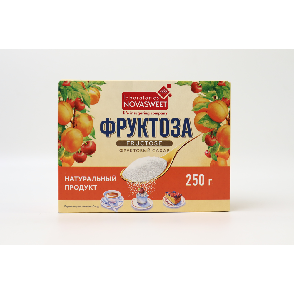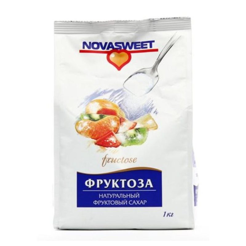 Фруктоза в порошке с витамином С Novasweet - натуральный фруктовый сахар. * Не содержит Гмо; * Содержит витамин С; * Не вызывает резкого повышения уровня глюкозы в крови человека, так как гликемический индекс фруктозы - 19 ед. ; * Усиливает вкус и аромат фруктов и ягод; * Обладает тонизирующим эффектом; * В 2 раз слаще сахара, т. е. можно заменить 4 л ожки сахара на 2-3 л ожки фруктозы, тем самым понизив калорийность блюд и напитков; * Может применяться при приготовлении продуктов детского питани