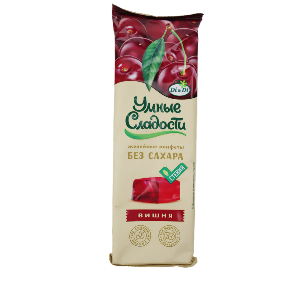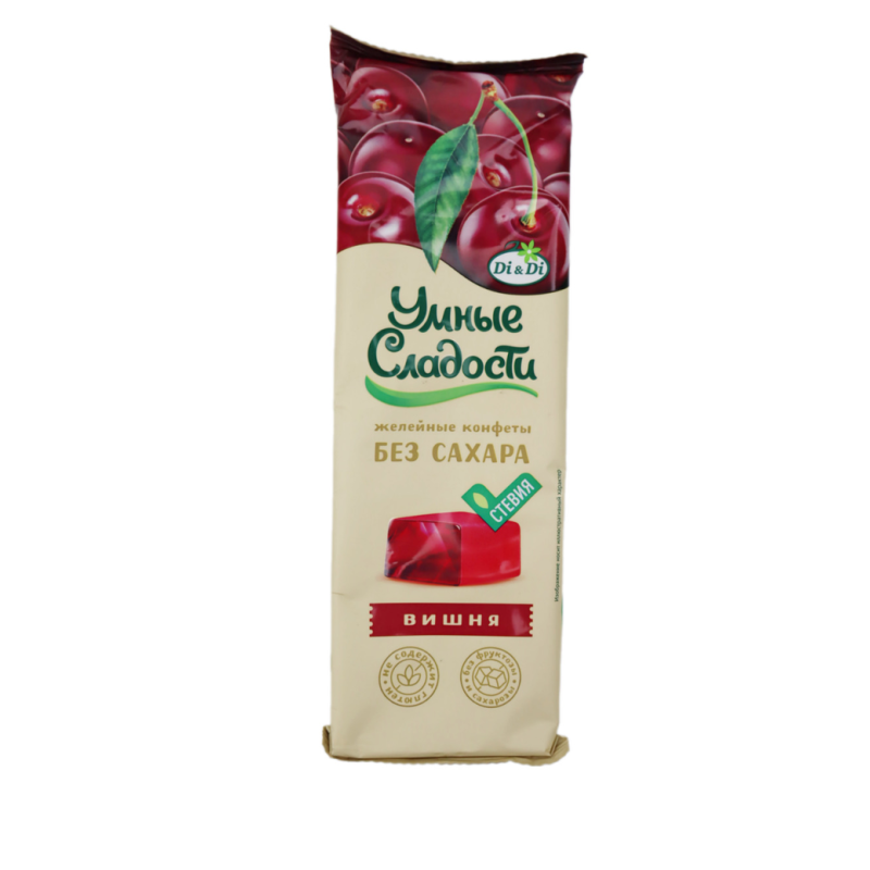 Конфеты желейные со вкусом Вишни «Умные сладости», 90 г Мармелад со вкусом вишни не содержит глютен и сахар, без добавления фруктозы и сахарозы. Подходит вегетарианцам и веганам. Умные сладости это сладости на основе стевии, содержащей природный сахарозаменитель — стевиозид.