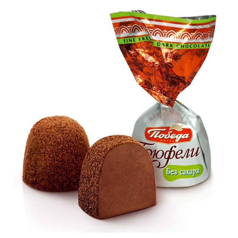 Конфеты Победа Трюфели без сахара посыпанные темным какао - это вкусное и полезное лакомство для всех возрастов. Они изготовлены из натуральных ингредиентов, в том числе из молочной шоколадной массы, масла пальмового ореха и какао. Вес одной упаковки составляет 150 г амм.