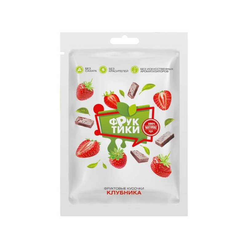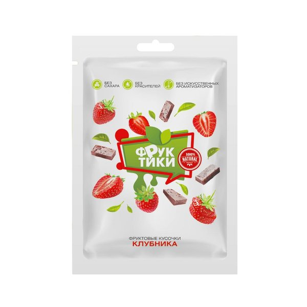 Фруктики Клубника изготовлены по технологии, которая позволяет сохранить пользу, вкус и аромат свежесобранных с полей ягод клубники и измельченных на нашей фабрике. Этот продукт является сладким решением проблемы питания. Фруктовые кусочки содержат в себе множество витаминов и минералов, их употребление способствует улучшению и нормализации работы органов пищеварения.