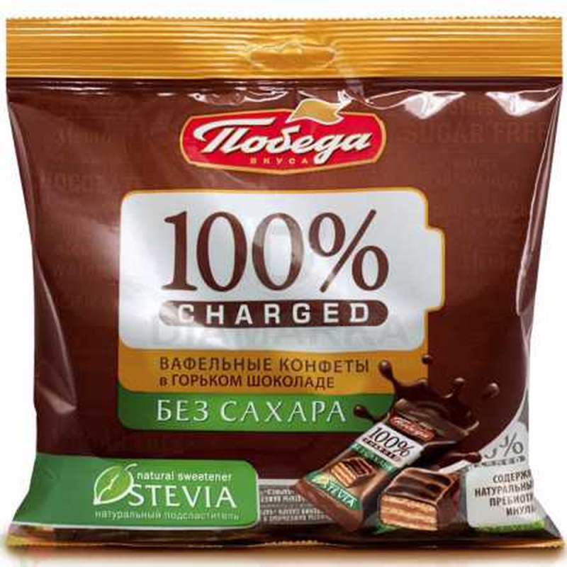 Конфеты Победа вафельные без сахара в молочном шоколаде весом 150 г амм. Состав продукта: молочный шоколад, вафли, масло сливочное, пшеничная мука, молочная пудра, протеиновый концентрат. Вкусные и полезные конфеты для всей семьи!