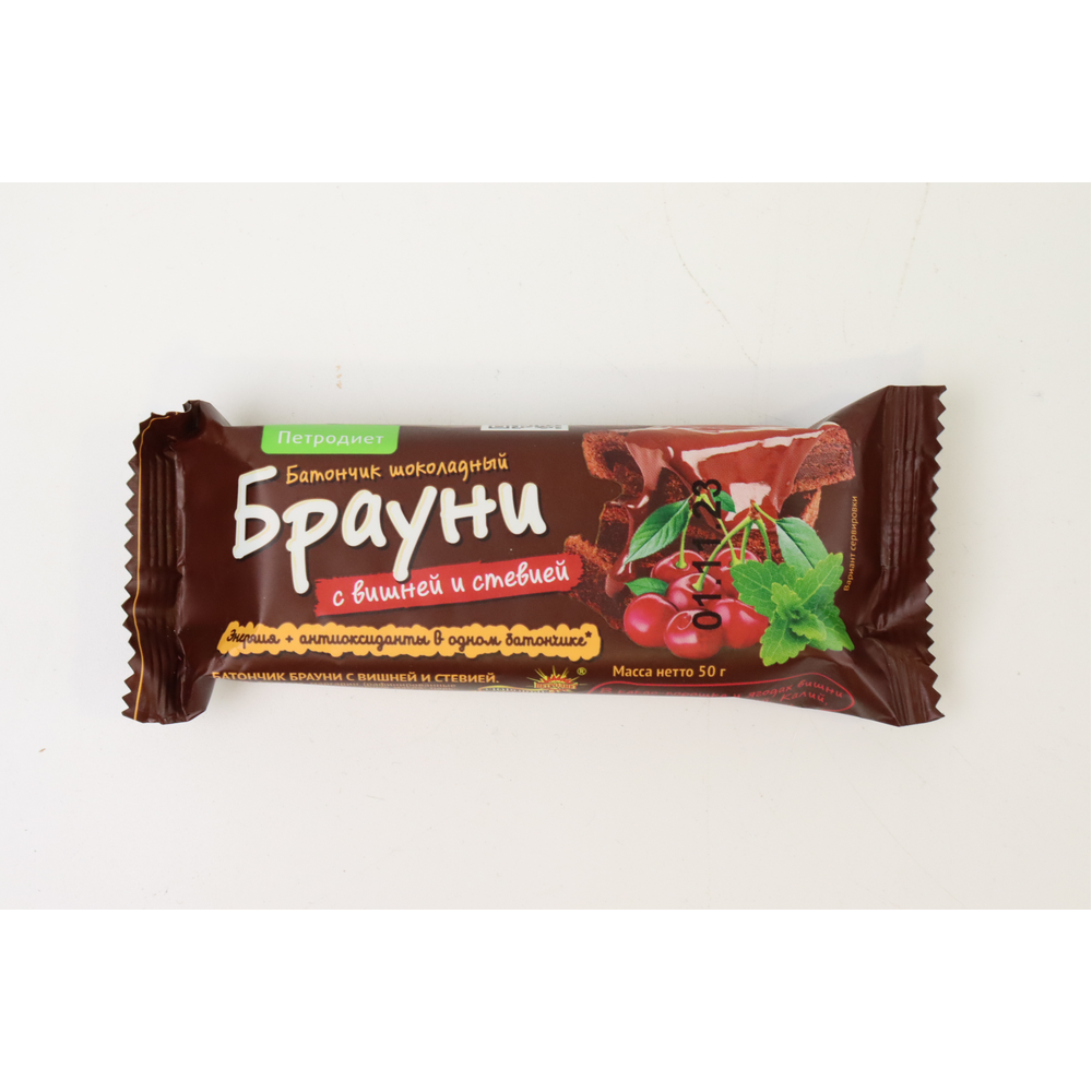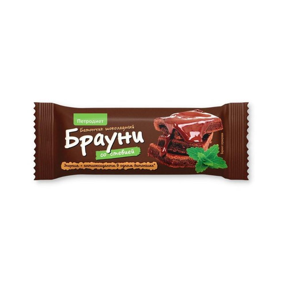 Батончик Брауни Шок со стевией – вкусное и полезное лакомство для всех возрастов. Он состоит из натуральных ингредиентов, включая муку пшеницы, стевию, сахар, масло растительное, молоко и яйца. Вес батончика составляет 50 г амм.
