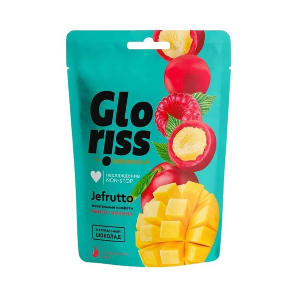 Жевательные конфеты Gloriss Jefrutto с манго-малиновым вкусом - идеальное сочетание для любителей сладкого. Они выполнены из натуральных ингредиентов, включая сахар, манго, малину, желатин и крахмал. Вес конфет - 75 г амм.