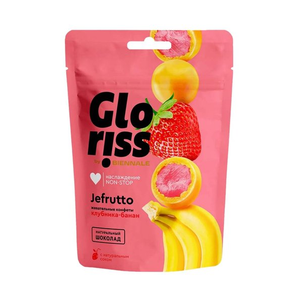 Жевательные конфеты Gloriss Jefrutto Клубника-Банан представляют собой вкусный и ароматный десерт. Они содержат натуральные ингредиенты, в том числе сахар, молоко, масло пальмовое, клубнику и банан. Они имеют приятную консистенцию и весьма привлекательный внешний вид.