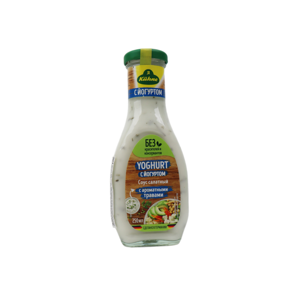 Соус салатный Kuhne с йогуртом объемом 250 миллилитров - это легкий и освежающий соус, приготовленный на основе натурального йогурта и изысканных специй. Идеально подходит для заправки свежих салатов, добавления в бургеры или использования в качестве соуса к овощам. Насладитесь нежным вкусом и ароматом соуса Kuhne с йогуртом, который придаст вашим блюдам неповторимую нотку свежести и легкости.