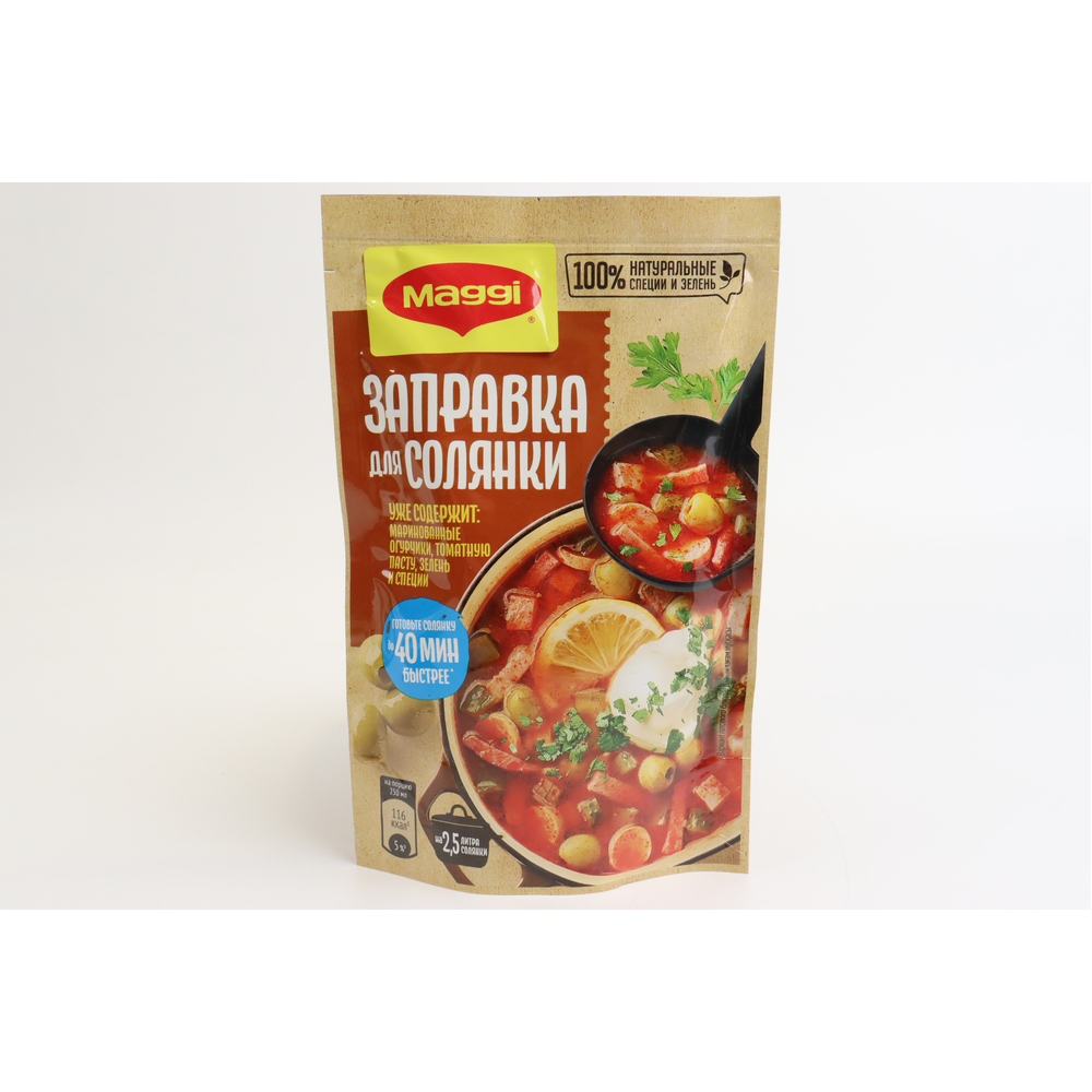 Заправьте свою солянку легко и быстро с помощью заправки Maggi! Этот продукт в удобной упаковке весом 180 г амм идеально подойдет для приготовления вкусного и ароматного блюда. Просто добавьте несколько ложек заправки в вашу солянку и наслаждайтесь насыщенным вкусом. Вы также можете использовать заправку Maggi для других супов и блюд, чтобы придать им особый вкус. Попробуйте сегодня и ощутите разницу во вкусе!