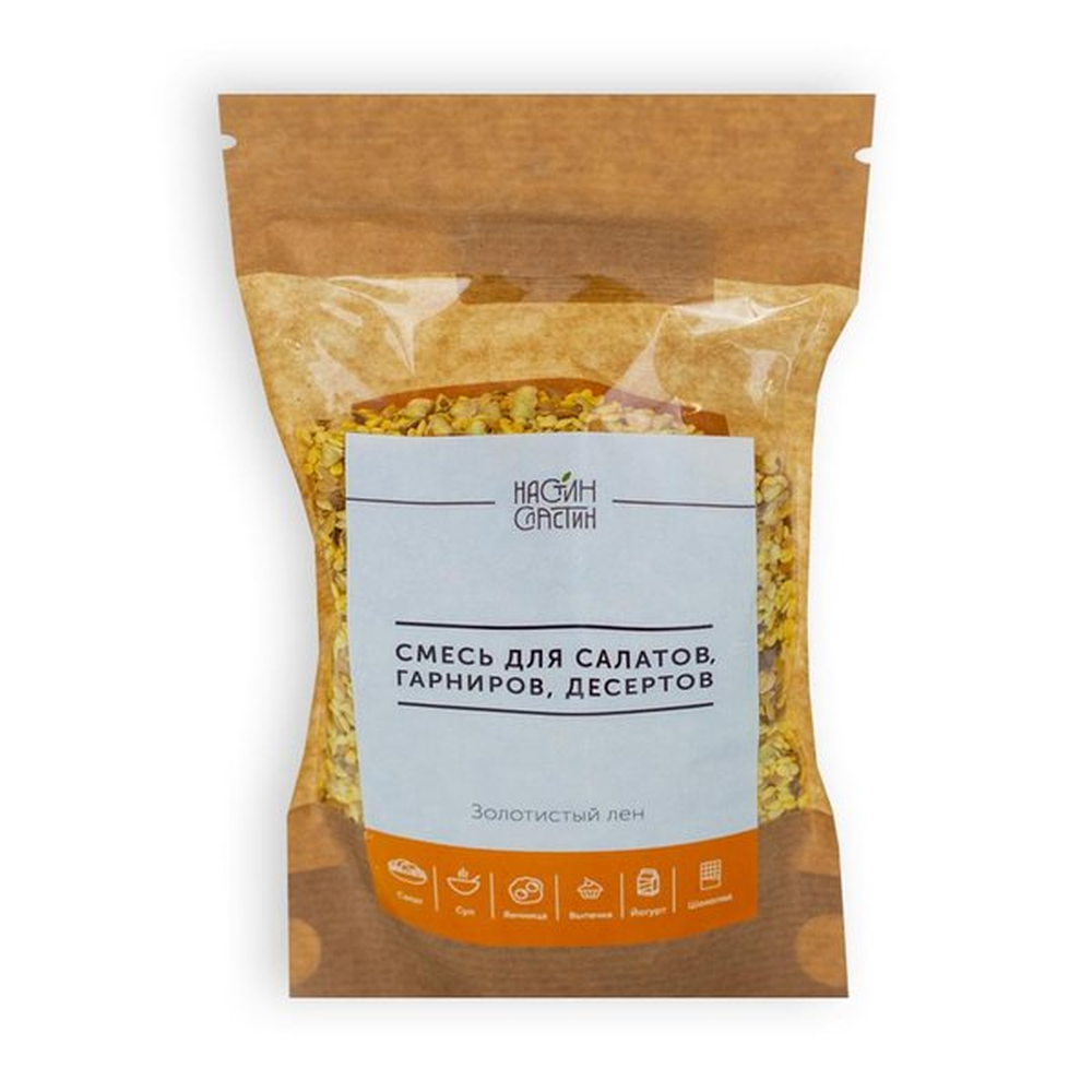 Смесь «Золотистый лен» идеально подходит для салатов, гарниров, десертов. Зерна кунжута содержат витамины А, группы В, С, Е, а также важные микроэлементы -цинк, железо, магний, фосфор, кальций, калий. Так как в кунжуте много кальция, употребление данного продукта способствует укреплению костей, суставов, хрящей, а также росту ногтей. Зеленая гречка настоящий чемпион по содержанию полезных витаминов и необходимых организму человека макро и микроэлементов.