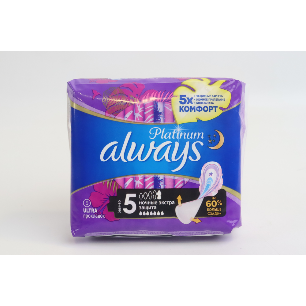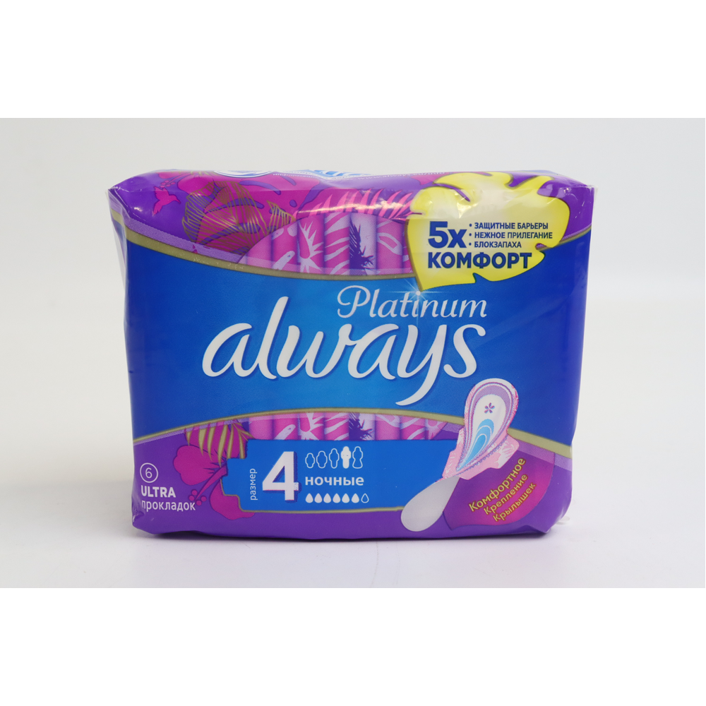 Прокладки Always Ultra Platinum - надежная защита на ночь. Экстра тонкий дизайн обеспечивает комфорт и уверенность во время сна. Суперабсорбирующий материал предотвращает протекания и обеспечивает сухость на протяжении всей ночи. Идеально подходят для активного образа жизни. Попробуйте и оцените удобство и надежность прокладок Always Ultra Platinum!