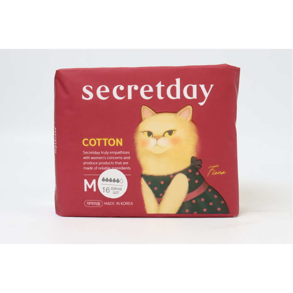 Женские гигиенические прокладки SecretDay изготовлены из хлопка, что обеспечивает комфорт и безопасность в течение всего дня. Удобный размер Medium идеально подходит для активного образа жизни. Каждая упаковка содержит 16 штук прокладок весом 108 г аммов. Продукт подходит для использования во время менструации или в качестве ежедневной защиты. Попробуйте SecretDay прокладки и почувствуйте уверенность и свежесть каждый день!