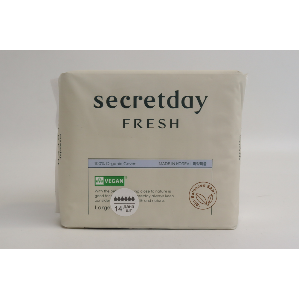 Женские гигиенические прокладки SecretDay Fresh Large - идеальное решение для комфортной защиты во время менструации. Удобные и надежные, они обеспечивают длительное ощущение свежести и сухости. Каждая прокладка имеет размер 12 г амм, что делает их идеальными для использования во время средних и сильных выделений. Прокладки SecretDay подходят для активного образа жизни и обеспечивают надежную защиту в течение всего дня. Попробуйте их сегодня и почувствуйте разницу!