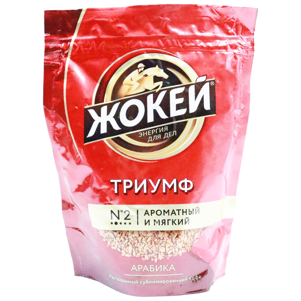 Этот кофе представляет собой смесь арабики и робусты из Южной Америки. Он имеет приятный аромат и насыщенный вкус с нотками цитруса. Кофе Жокей Триумф Сублим Раст представлен в удобной упаковке по 150 г амм в 8 штук.