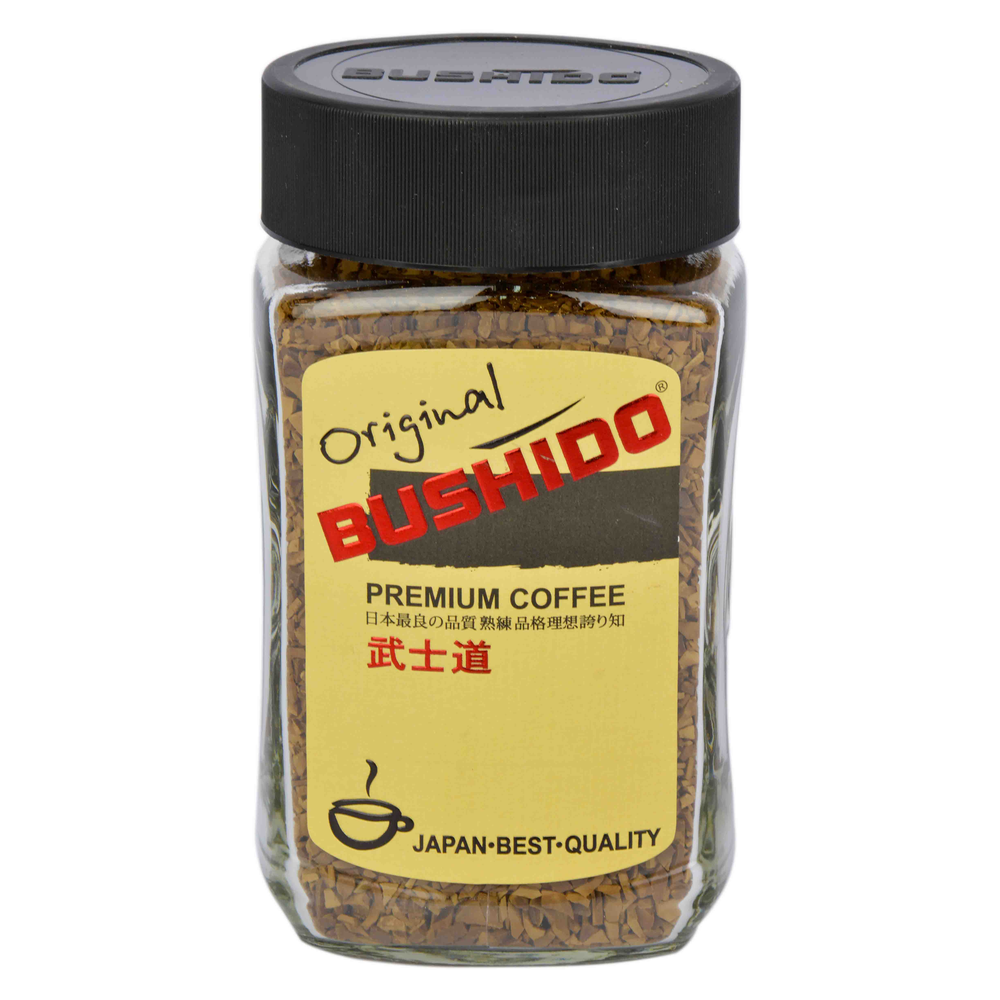Кофе Bushido Original растворимый в пакетиках по 100 г амм. Состав кофе включает в себя арабику и робусту в соотношении 1:1. Он имеет приятный аромат и вкус с нежным послевкусием.