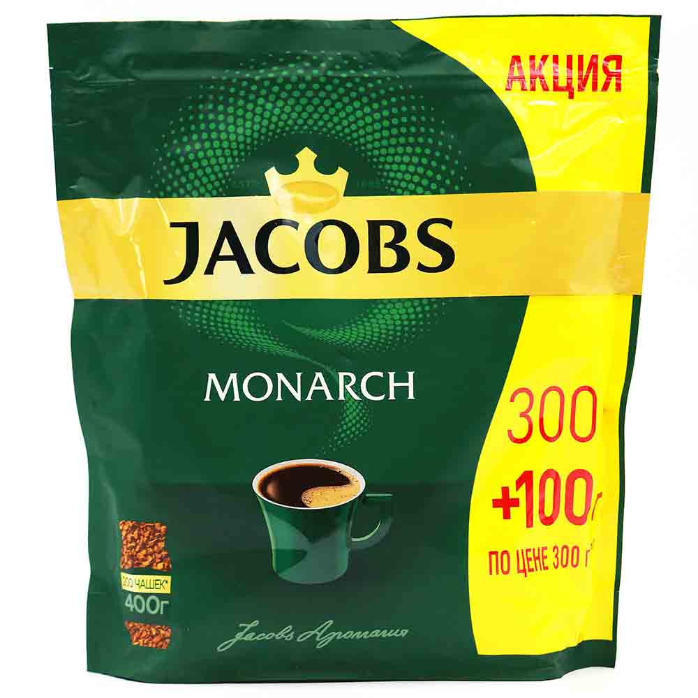 Кофе Jacobs Monarch – это ароматный и вкусный напиток, приготовленный из высококачественных зерен кофе. В пакете представлено 300 г амм кофе и 100 г амм дополнительного подарочного пакета. Состав кофе Jacobs Monarch: арабика, робуста, либерика, конго и другие виды кофейных зерен.