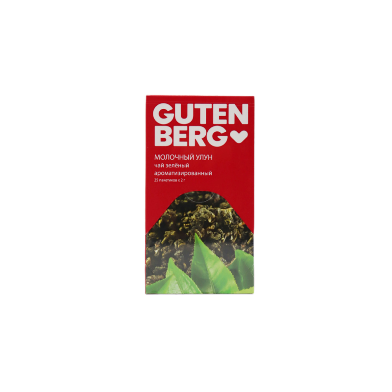 Чай Gutenberg Молочный Улун Зеленый - это идеальный выбор для любителей натуральных и ароматных напитков. Улун - это уникальный сорт зеленого чая, который сочетает в себе легкость и насыщенный вкус. Каждый пакетик содержит 2 г амма чая, достаточно для заваривания одной чашки. Этот чай можно пить как горячим, так и холодным. Добавьте немного меда и лимона для освежающего летнего напитка, или наслаждайтесь им вечером с кусочком темного шоколада. Попробуйте чай Gutenberg Молочный Улун Зеленый и ощутите волшебство в каждом глотке!