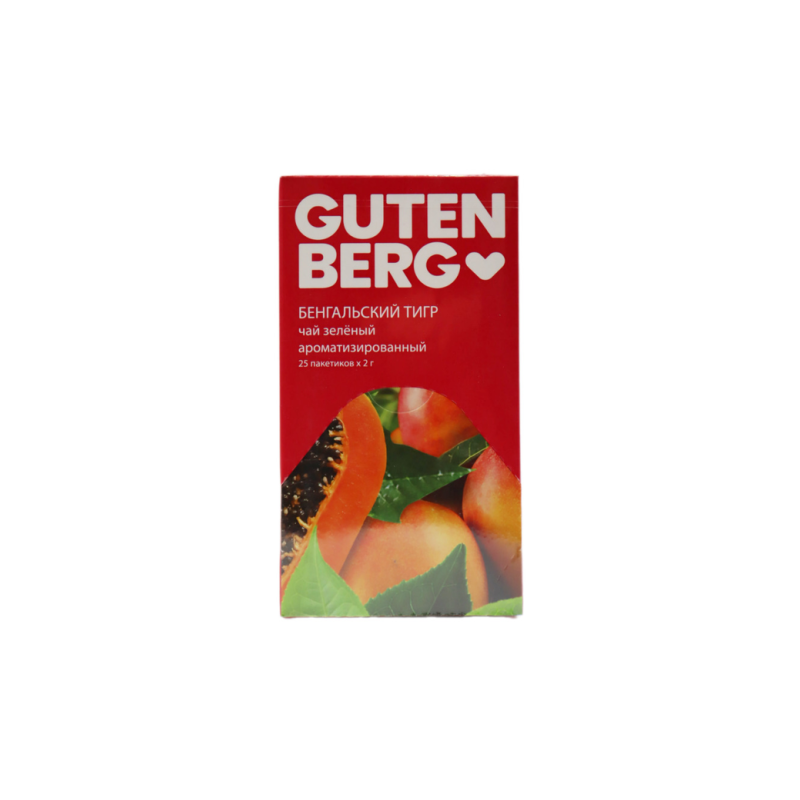 1. Чай Gutenberg Бенгальский Тигр зеленый представляет собой пакет из 25 пакетиков по 2 г амма каждый. 2. Этот чай имеет приятный аромат и вкус, а также полезные свойства для здоровья. 3. Он содержит натуральные ингредиенты, включая бенгальский тигр, который придает ему особую горьковатую привкус. 4. Чай Gutenberg Бенгальский Тигр зеленый поможет вам поддерживать здоровое тело и дух.