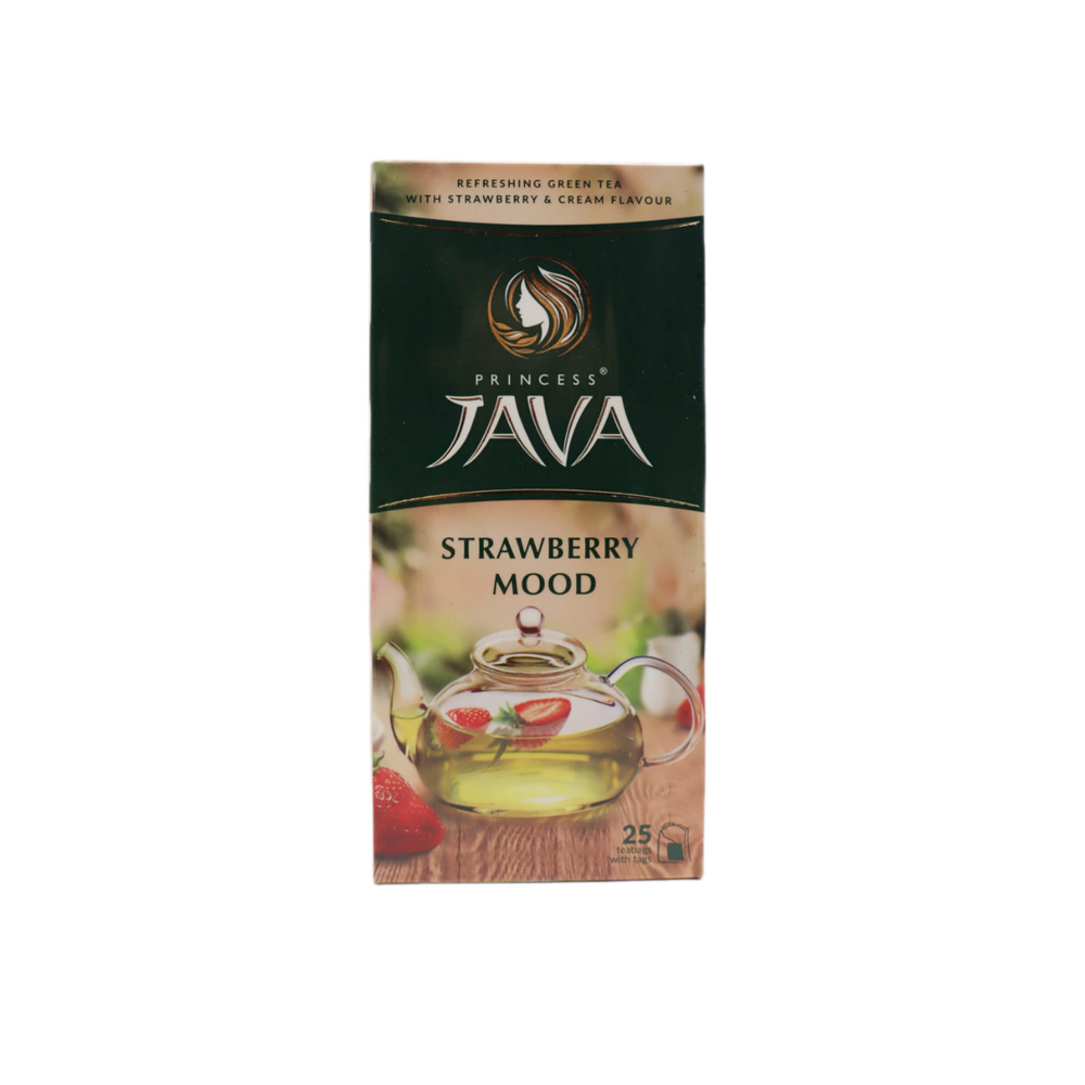 Чай Ява Клубничное Настроение – это прекрасный выбор для любителей чая. Он изготовлен из высококачественных ингредиентов и имеет приятный аромат клубники. Продукт представлен в удобной упаковке по 1,5 г амма в пакете. Состав чая включает в себя листья зеленого чая и натуральные ароматизаторы. Он предназначен для приготовления в двойной порции.