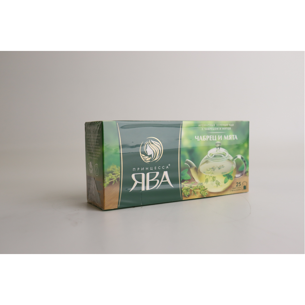 Чай Зеленый Ява Чабрец/Мята – это прекрасный выбор для любителей зеленого чая. Он имеет приятный аромат и вкус. Упаковка весит 1,5 г амма и содержит 25 штук по 18 г амм каждая. Состав чая включает в себя листья зеленого чая и ароматизаторы мяты и чабреца.