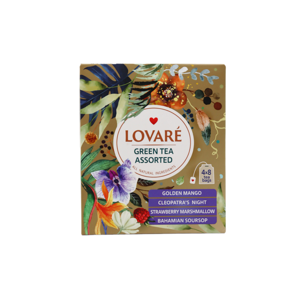 Погрузитесь в мир ароматов и вкусов с зеленым чаем Lovare! Насладитесь нежным и освежающим вкусом этого ассорти, которое включает в себя разнообразные сорта зеленого чая. Попробуйте его как горячий напиток для утреннего бодрствования или холодный напиток для освежения в жаркий день. Создайте уютную атмосферу и наслаждайтесь моментом с чаем Lovare! Действуйте сейчас и добавьте этот чай в свою корзину для незабываемого чаепития.