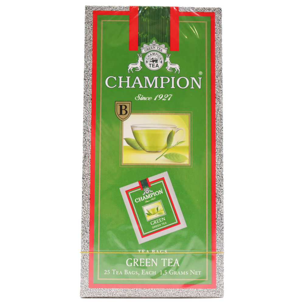 Чай Чемпион Зеленный – это прекрасный вкус и аромат зеленого чая. Он состоит из высококачественных листьев зеленого чая с добавлением ароматических ингредиентов. Упаковка весит 375 г амм и содержит 25 пакетиков по 1,5 г амма. Чай Чемпион Зеленный поможет вам поддерживать здоровое тело и душу.