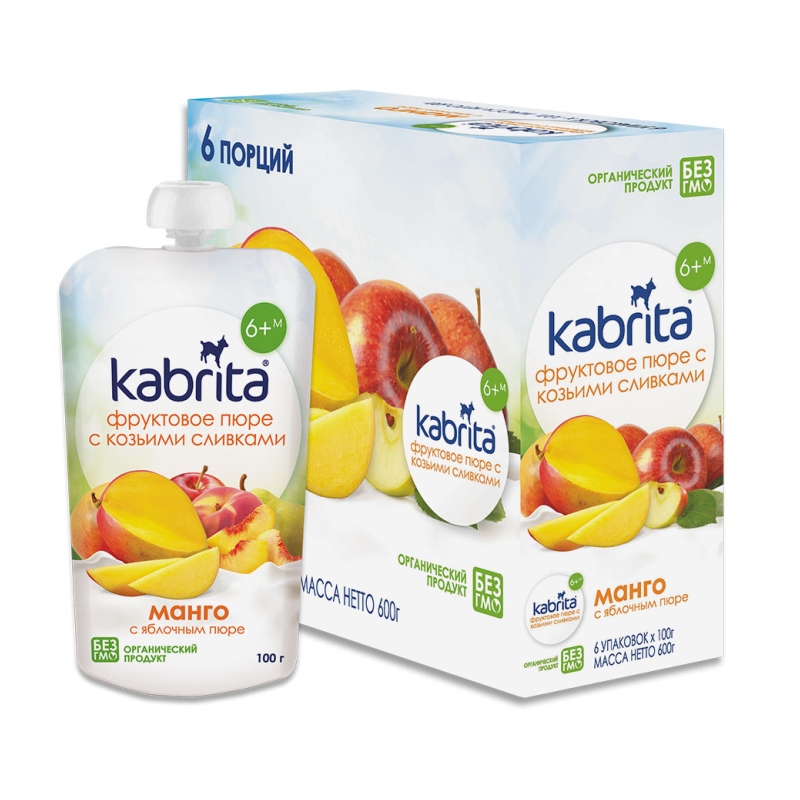 «Манго с яблочным пюре», с 6 месяцев, 100 г Вкусное спелое манго и сладкое яблоко в сочетании с нежными сливками козьего молока круглый год. Изысканный и вкусный десерт из органических фруктов. Идеальное решение для прогулок и перекуса как для малышей, так и для детей более старшего возраста. Удобная и опрятная мягкая упаковка способствует развитию мелкой моторики малыша и навыков самостоятельности. Не требует хранения в холодильнике. Для де