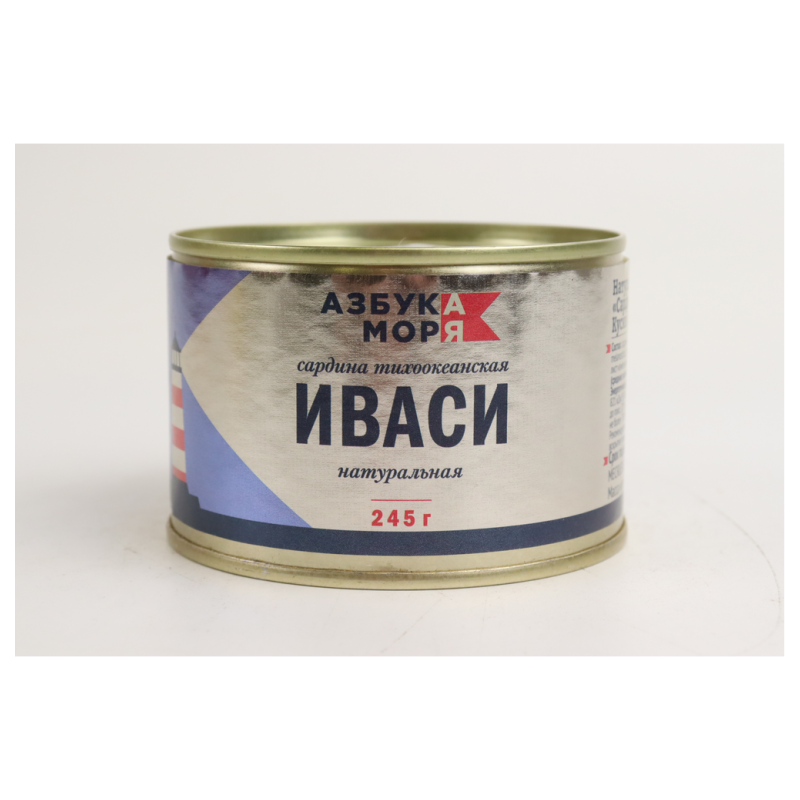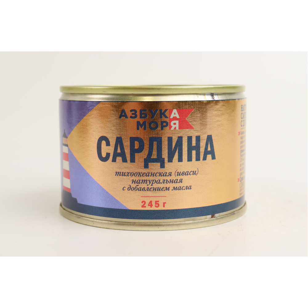 Сардина «Азбука Моря» тихоокеанская Иваси натуральная в банке объемом 245 г амм представляет собой консервированную рыбу, вероятно, без добавления дополнительных ингредиентов, что позволяет сохранить естественный вкус и полезные свойства сардины. Вот некоторая информация о данном продукте: Особенности: