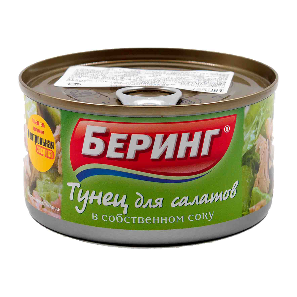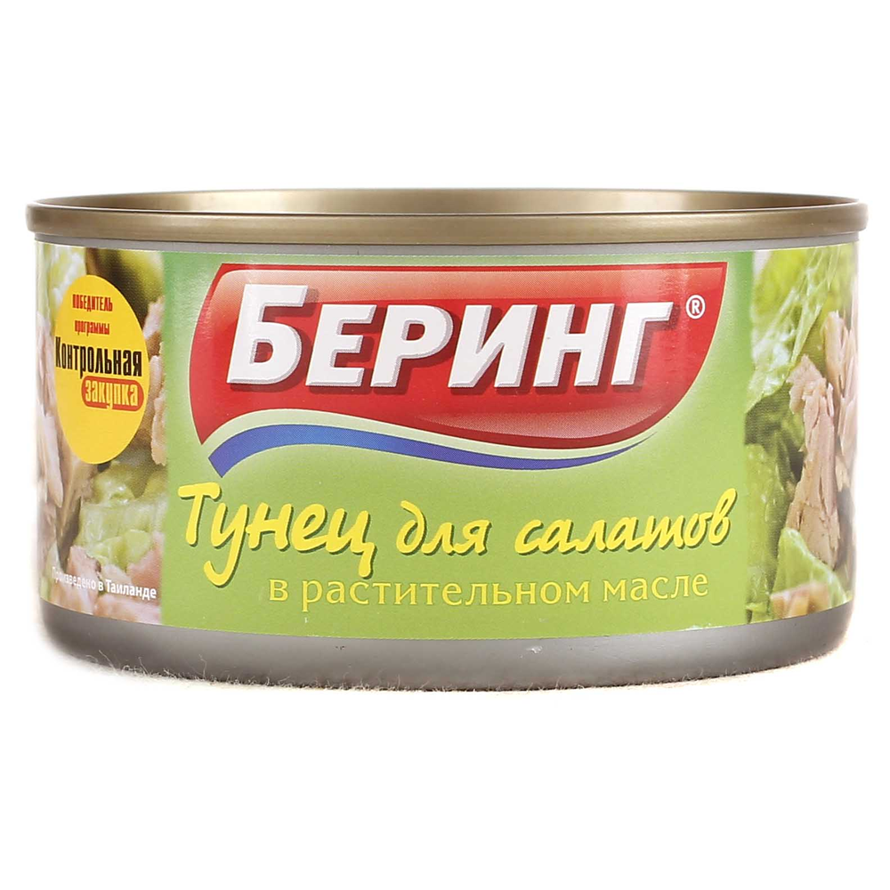 Тунец Беринг для салатов в с/с ж/б представляет собой качественный продукт из морских глубин. Он имеет в своем составе полезные для здоровья жирные кислоты и белки. Вес банки составляет 185 г амм.
