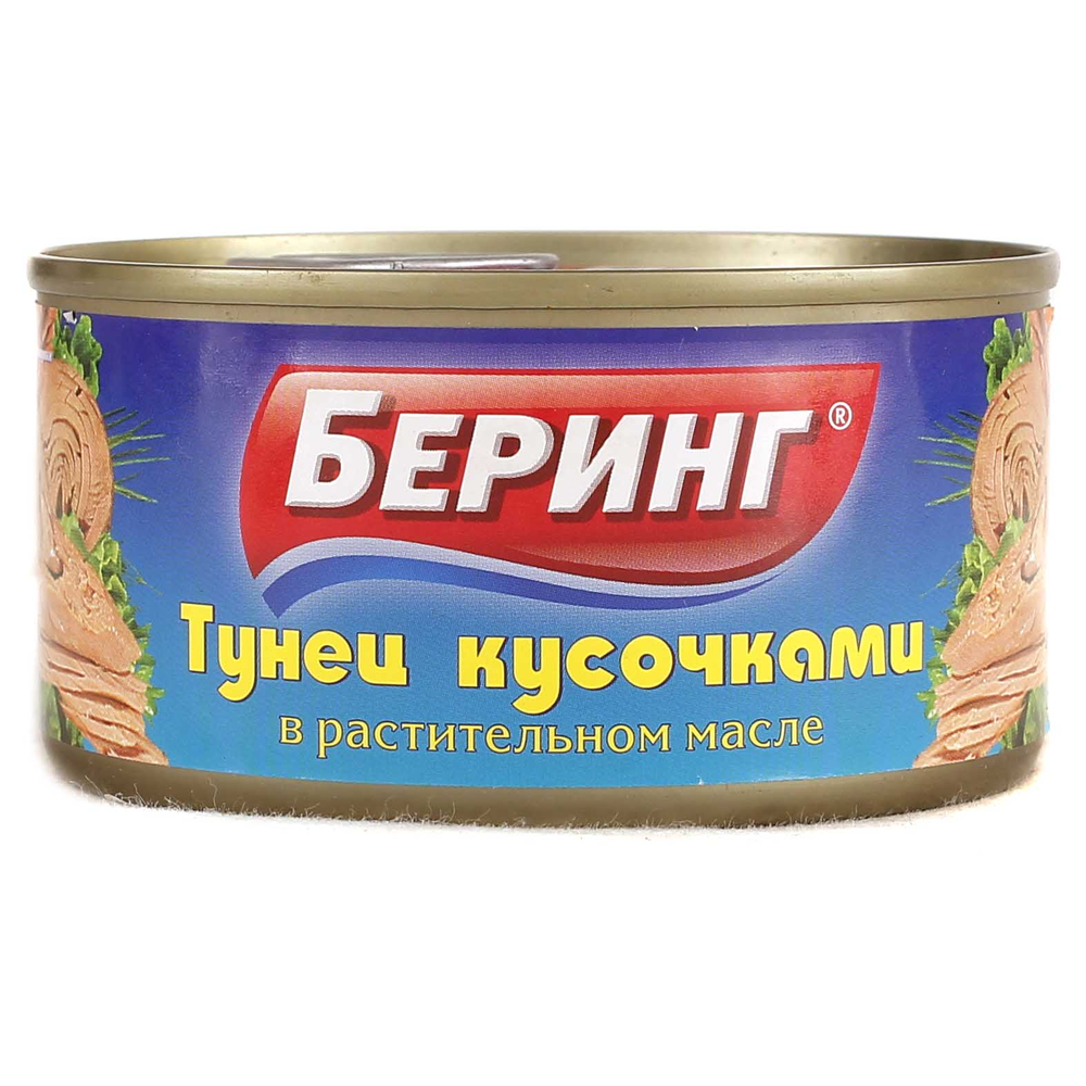 Тунец в масле Беринг - это прекрасный вкусный и полезный продукт. Он состоит из кусочков тунца в жирном масле и имеет вес 185 г амм. Тунец Беринг представляет собой источник полезных жирных кислот, а также минералов и витаминов.