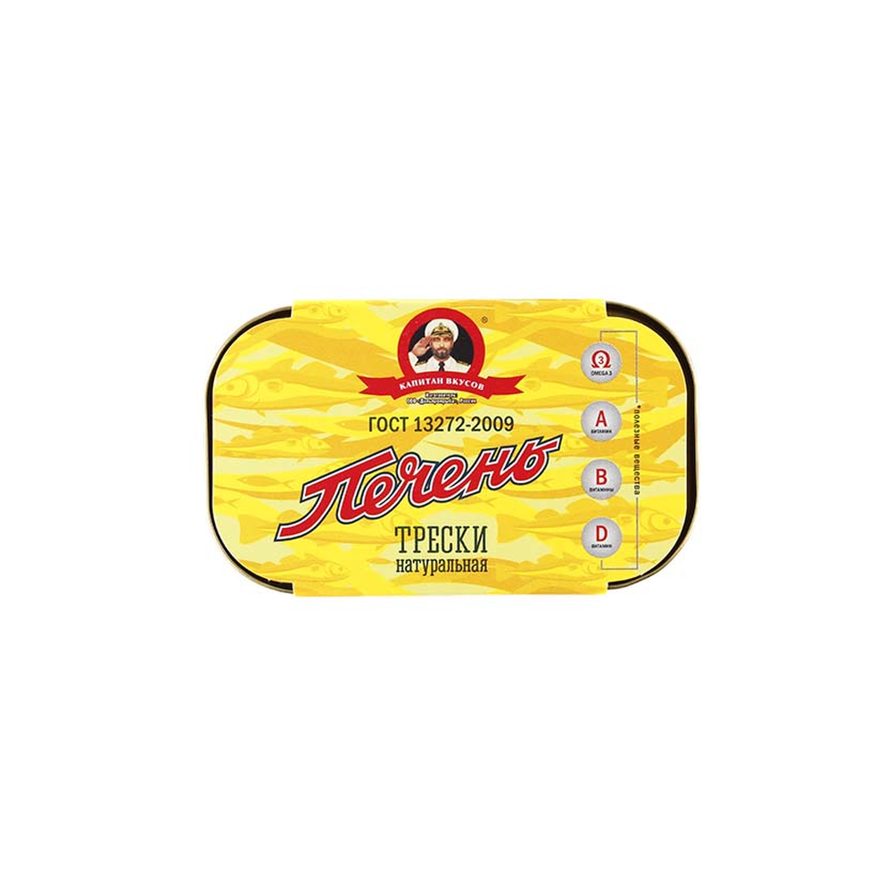 Печень трески «Капитан Вкуса» натуральная, произведенная в Исландии, является деликатесом, богатым витаминами и омега-3 жирными кислотами. Этот продукт поставляется в жестяной банке объемом 115 г амм и обычно используется как самостоятельная закуска, добавка к салатам или ингредиент для бутербродов.