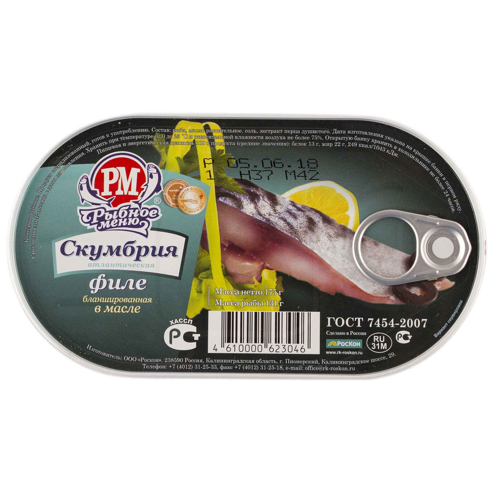 Скумбрия Атлант филе бланширован РМ Hansa в масле – это прекрасный выбор для любителей рыбных блюд. Она изготовлена из высококачественного филе скумбрии Атлант, бланшированного в масле. В состав входят только натуральные ингредиенты: рыбное филе, масло растительное, соль, перец.