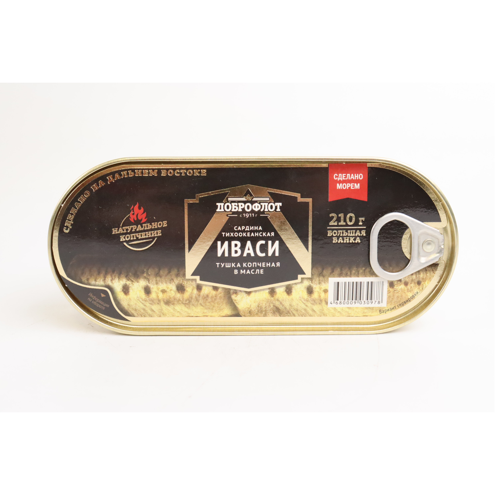 Сардина Доброфлот Тихоокеанская Иваси Копченая в масле – это вкусное и полезное блюдо из копченой сардины. Она приготовлена из высококачественной сардины Тихоокеанского моря, которая прошла процесс копчения и затем запечена в масле. Состав блюда включает в себя сардину, масло, соль и перец. Вес порции составляет 210 г амм.