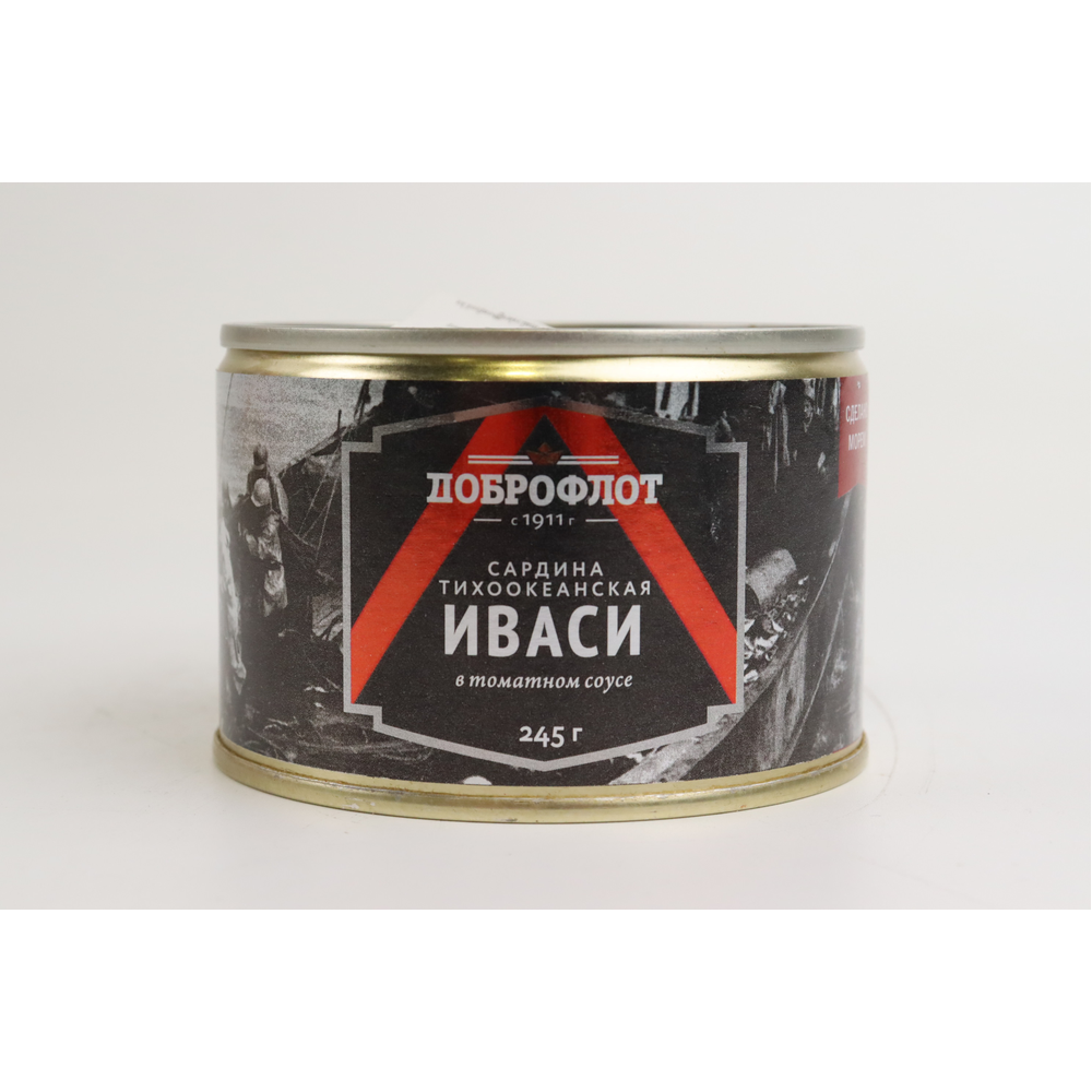 Сардина Доброфлот Тихоокеанская Иваси - это вкусный и полезный продукт из Тихоокеанского рыбного масла. Он содержит высокое количество полезных для здоровья жирных кислот, в том числе Омега-3. Состав продукта включает в себя тихоокеанскую иваси, масло рыбьего жира, масло кукурузы, масло соевое, лимонную кислоту и другие ингредиенты. Все ингредиенты проходят строгую проверку качества и безопасности. Упаковка весит 245 г амм.