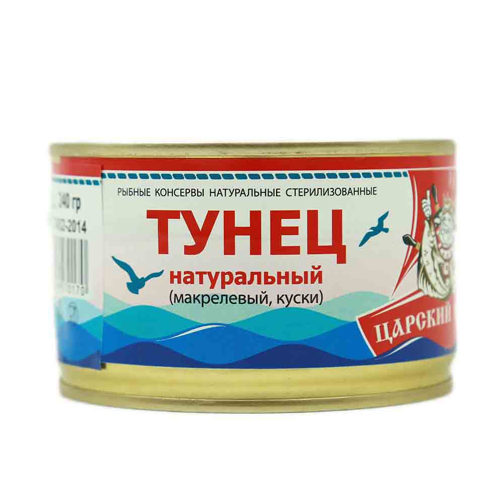 Тунец Натуральный Царский Улов отличается высоким качеством и прекрасным вкусом. Он производится из натурального тунца и имеет состав: масло рыбное, протеины рыбные, жиры рыбные, вода, соль, природные ароматизаторы. Вес одной упаковки составляет 240 г амм.