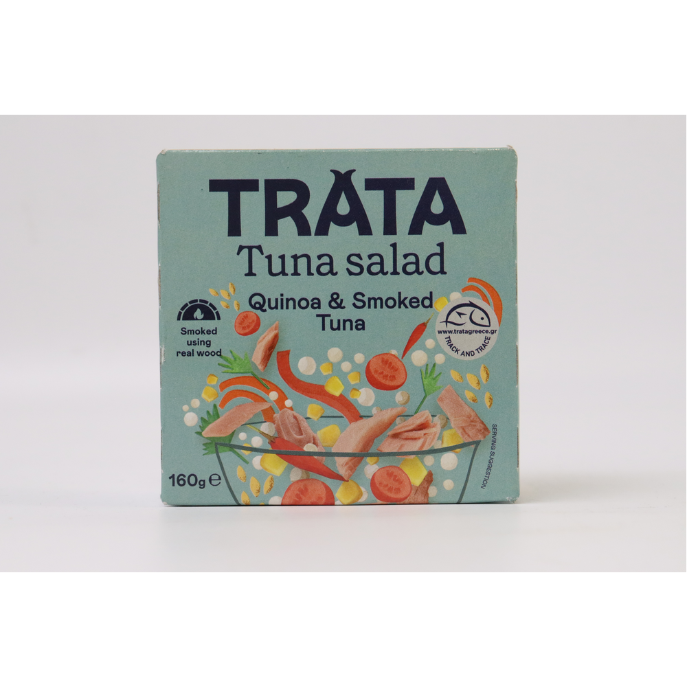 Салат Trata с киноа/копч тунцом 160 г - это вкусный и ароматный салат, приготовленный из киноа/копч тунца, помидоров, огурцов, маслин, лука и зелени. Он прекрасно подходит для любого праздничного стола. Салат приготовлен из натуральных ингредиентов и имеет приятный вкус и аромат.