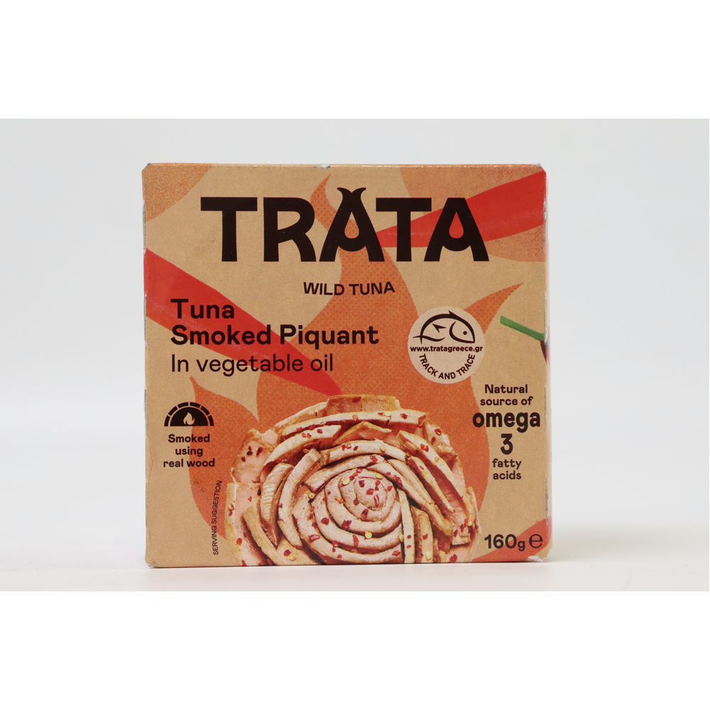 Тунец Trata Копч+Пикантный 160 г - это превосходный продукт из морской рыбы, приготовленный по традиционной рецептуре. Он состоит из морского тунца, приправленного специями и приготовленного по копчению. Вкус тунца пикантный и нежный, а в состав входят также масло кокоса, соль, перец и другие природные ингредиенты.