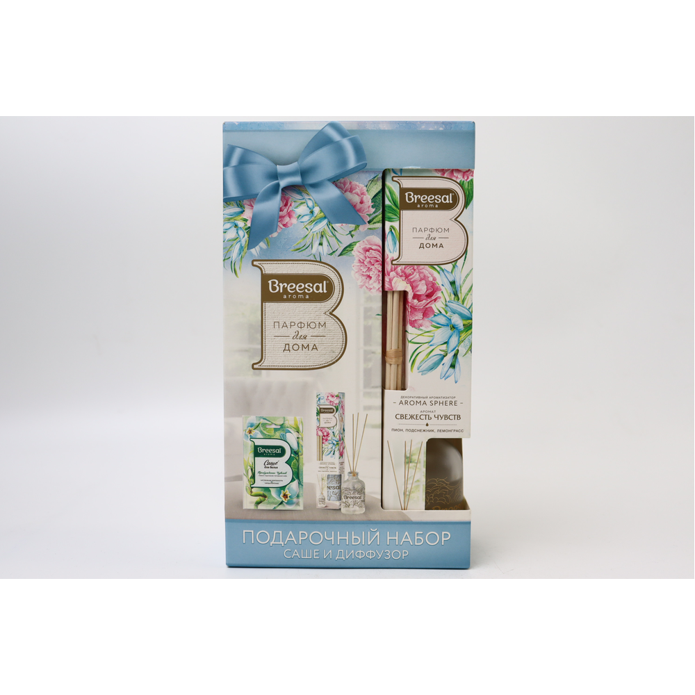 Превратите свой дом в оазис спокойствия с набором подарочным Breesal! Диффузор в форме сферы и саше голубого цвета создадут уютную атмосферу и наполнят ваш дом нежным ароматом. Прекрасный подарок для себя или близких. Используйте диффузор в спальне для создания романтической обстановки или в гостиной, чтобы привнести свежесть и уют. А саше можно положить в шкаф, чтобы одежда всегда пахла приятно. Попробуйте этот набор и почувствуйте, как ваш дом наполняется гармонией и умиротворением!
