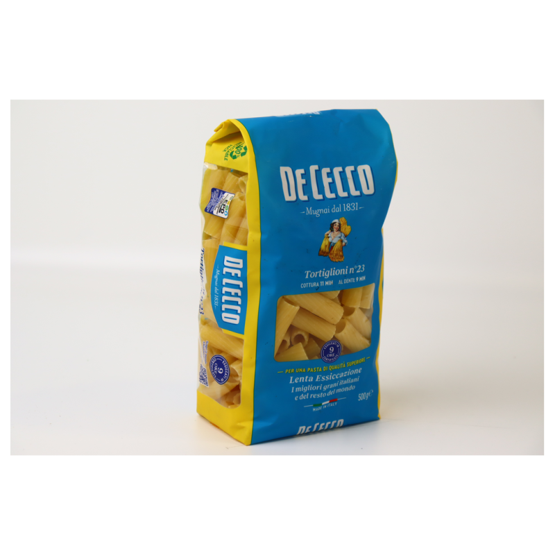 De Cecco Tortiglioni - это макаронное изделие из высококачественной пшеницы для приготовления вкусных блюд. Они имеют форму прутьев, которые прекрасно подходят для приготовления соусов и гарниров. Изделие имеет вес в 500 г амм и состоит из высококачественной пшеницы, масла и воды.