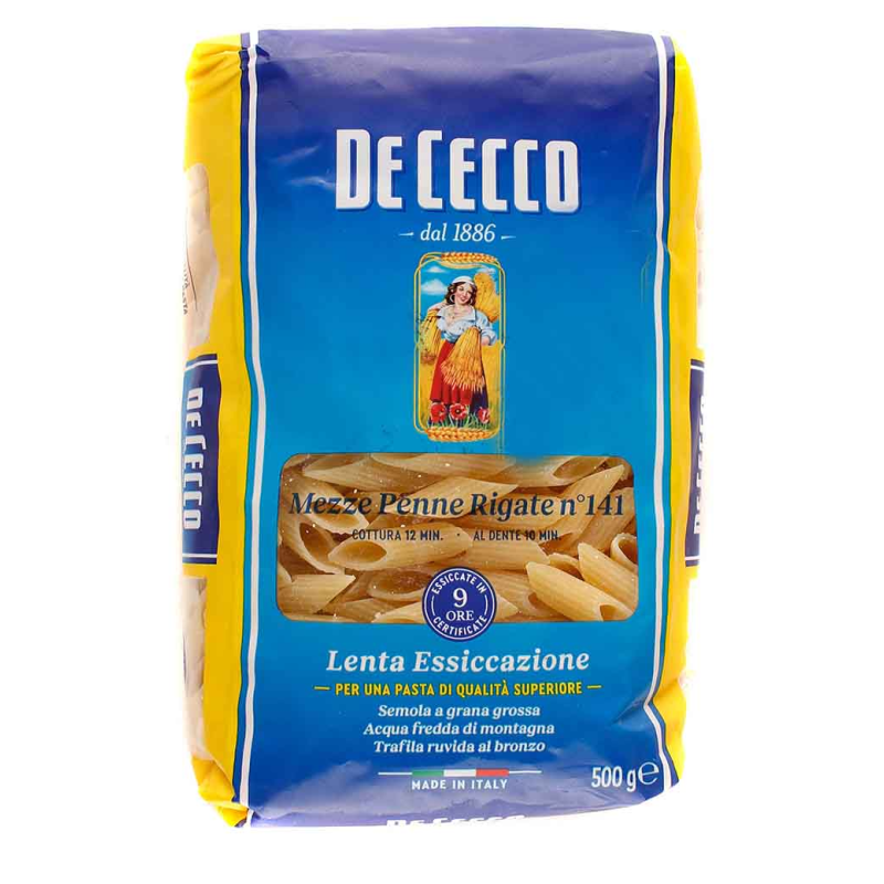 Макаронные изделия De Cecco Mezze Penne Rigate - это прекрасный выбор для приготовления вкусных и полезных блюд. Они изготовлены из высококачественной пшеницы и проходят тщательную проверку качества. В состав изделия входит только натуральные ингредиенты, без добавления консервантов. Вес изделия составляет 141 500 г амм.