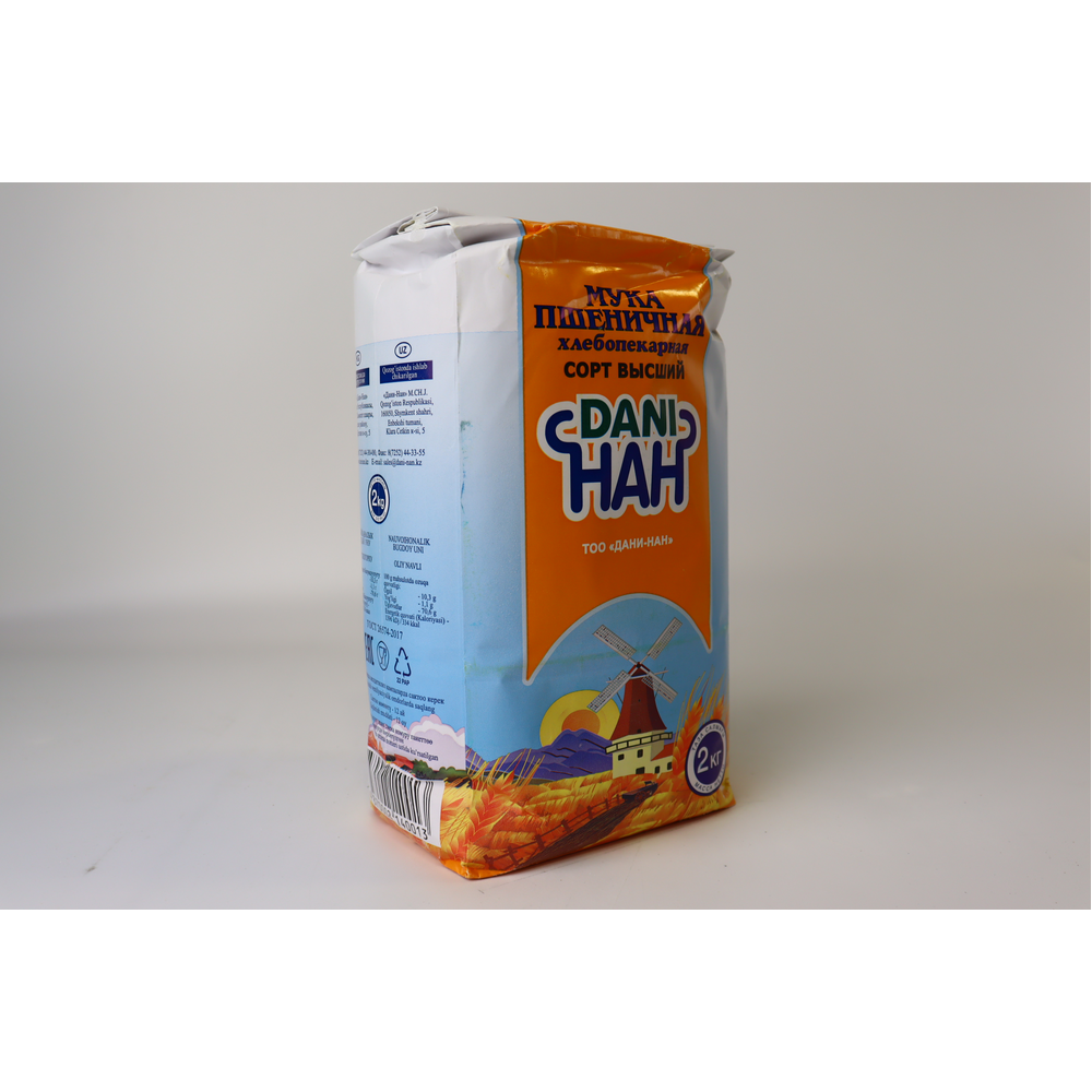 Мука «Dani Нан» высшего сорта в упаковке весом 2 килограмма является высококачественной пшеничной мукой, идеально подходящей для выпечки хлеба, кондитерских изделий, блинов и других кулинарных изделий. Высший сорт муки обеспечивает хорошие результаты благодаря своему тонкому помолу и высоким хлебопекарным свойствам.