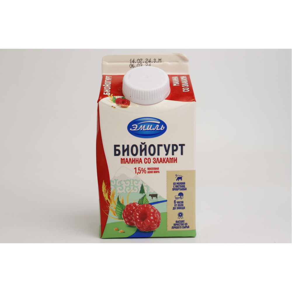 Биойогурт «Эмиль» с малиной и добавлением злаков, содержание жира 1,5%, упакованный в пластиковый пюрпак объемом 450 г амм, - это вкусный и полезный молочный продукт. Обладая нежным вкусом малины и дополнительной текстурой за счёт злаков, этот биойогурт идеально подходит для утреннего завтрака или перекуса. Низкое содержание жира делает его легким и пригодным для различных диет. Удобная упаковка обеспечивает легкость хранения и использования продукта.